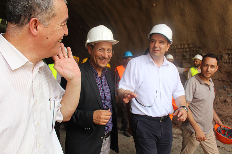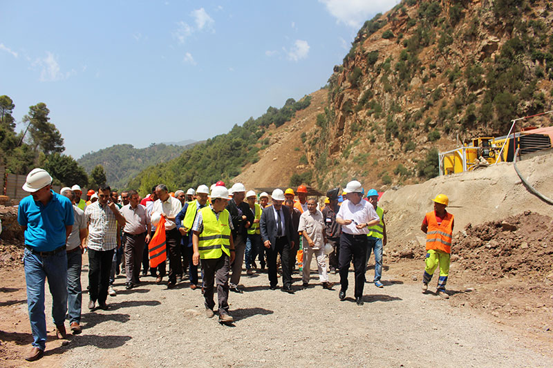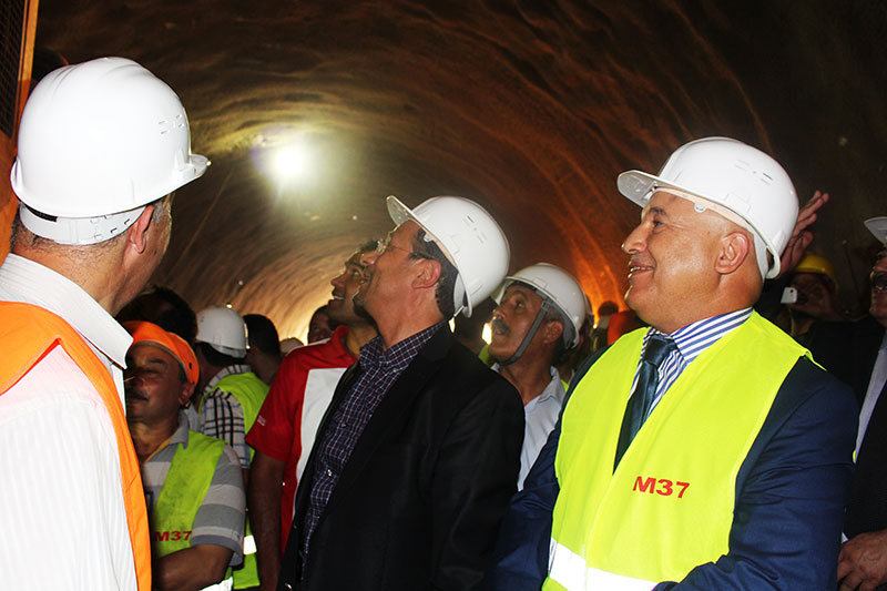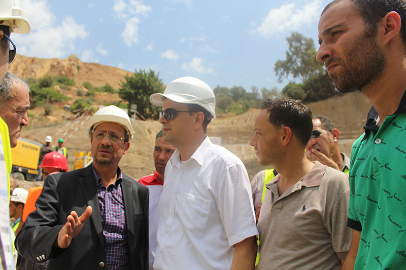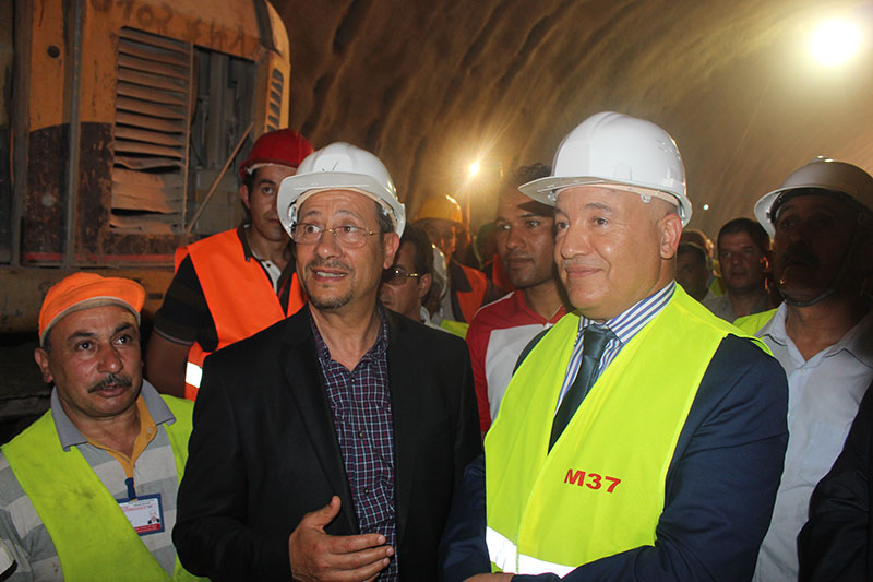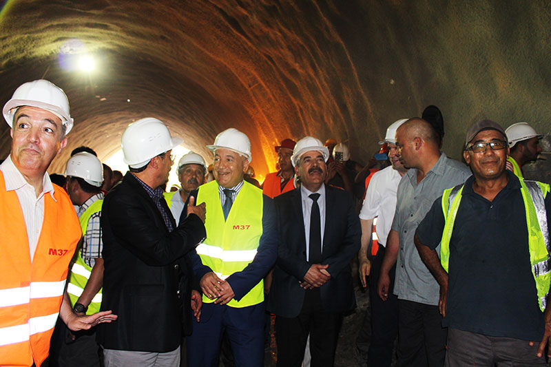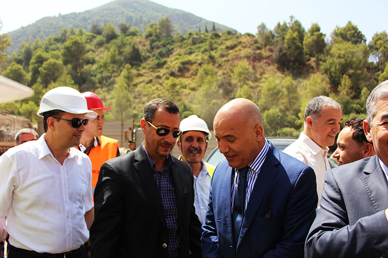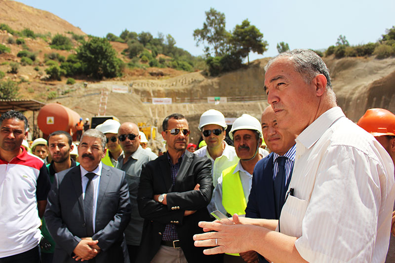 Le Secrétaire Général du Ministère des Travaux Publics et des Transports, le Secrétaire Général de la Wilaya de Blida et le Président Directeur Général du Groupe COSIDER ont assisté hier Lundi 1er aout 2016 aux travaux de jonction des deux tronçons du tunnel du pic des pigeons à Hammam Melouane dans la Wilaya de Blida.