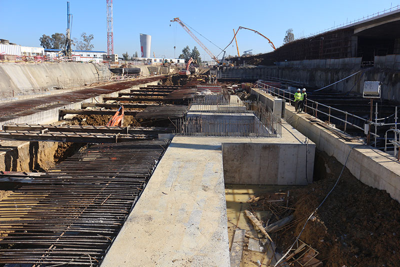 Dans le cadre du suivi de réalisation du métro d’Alger, tronçons Ain Naadja – Baraki et El Harrach – Aéroport, le Président Directeur Général du Groupe COSIDER, accompagné des responsables des filiales ; Travaux Publics ; Géotechnique et Ouvrages d’Art, en charge des projets suscités, ont effectué une visite sur le site du projet de la station du métro de la nouvelle aérogare internationale, précisément, où une présentation lui a été faite des travaux en cours ainsi que les moyens mis en place par la Direction du projet pour assurer le bon déroulement du planning de réalisation et son achèvement dans les délais contractuels.