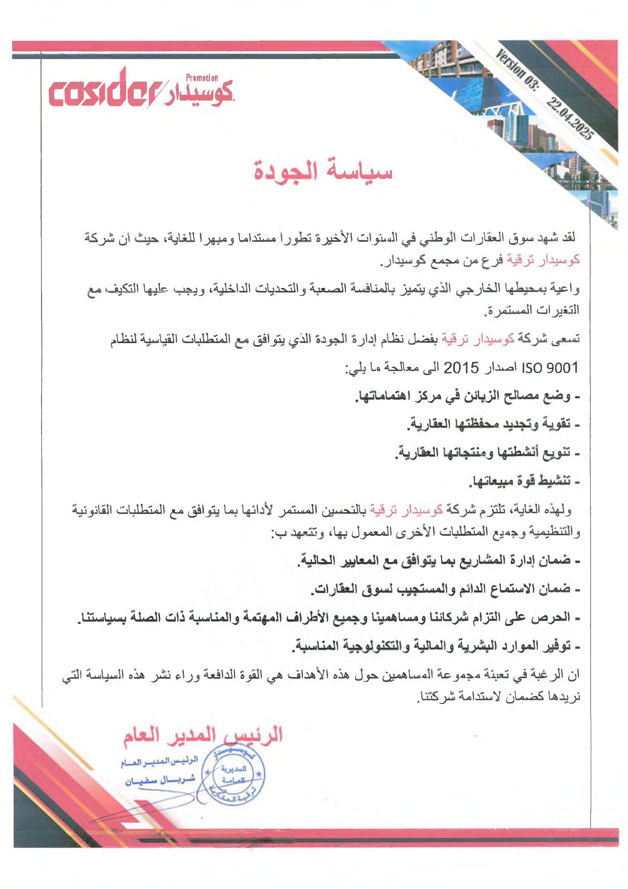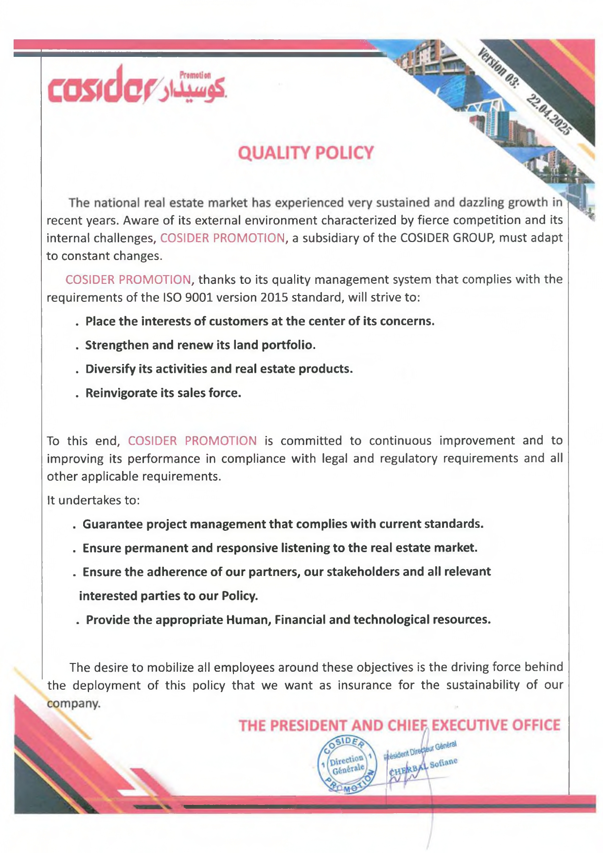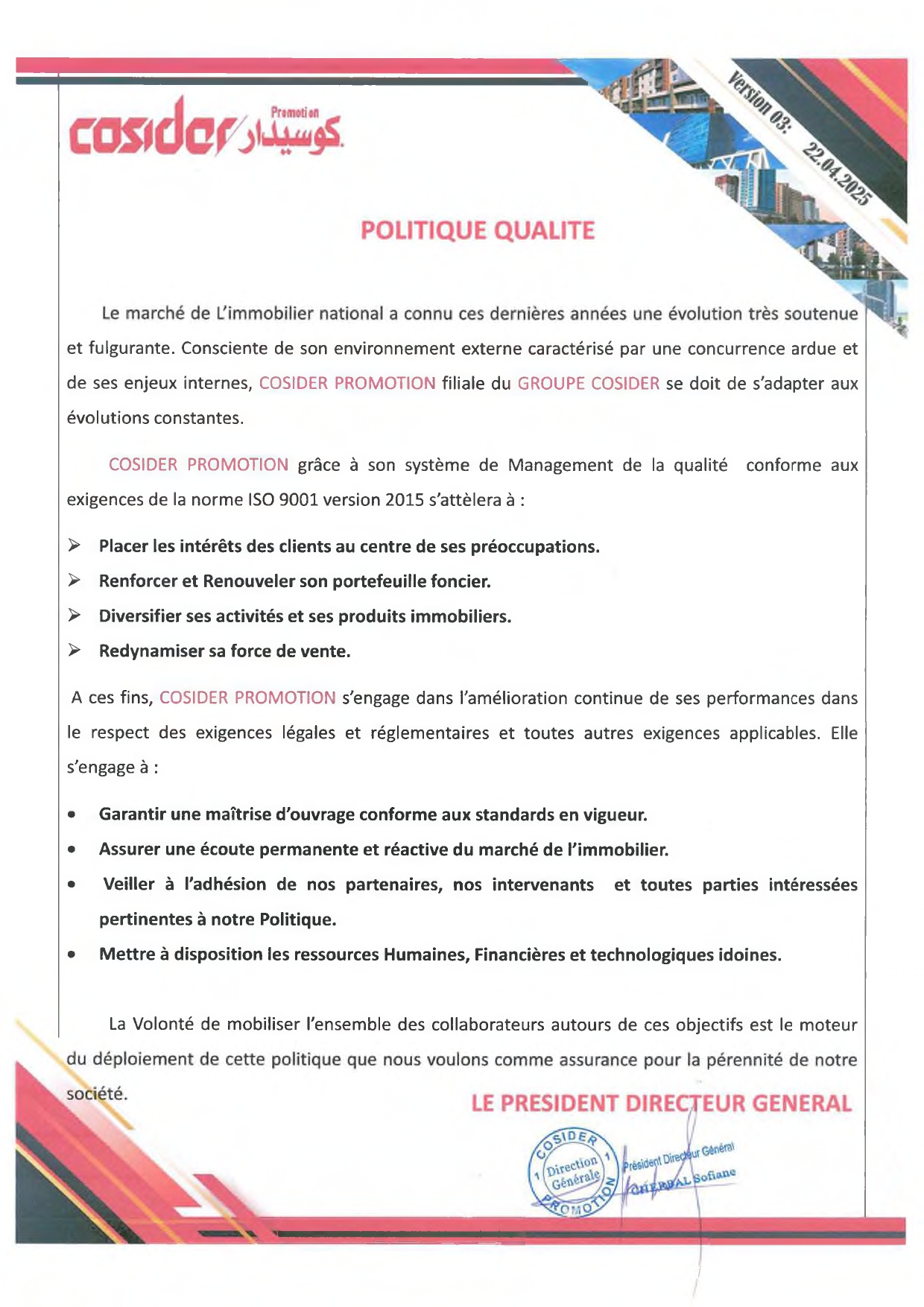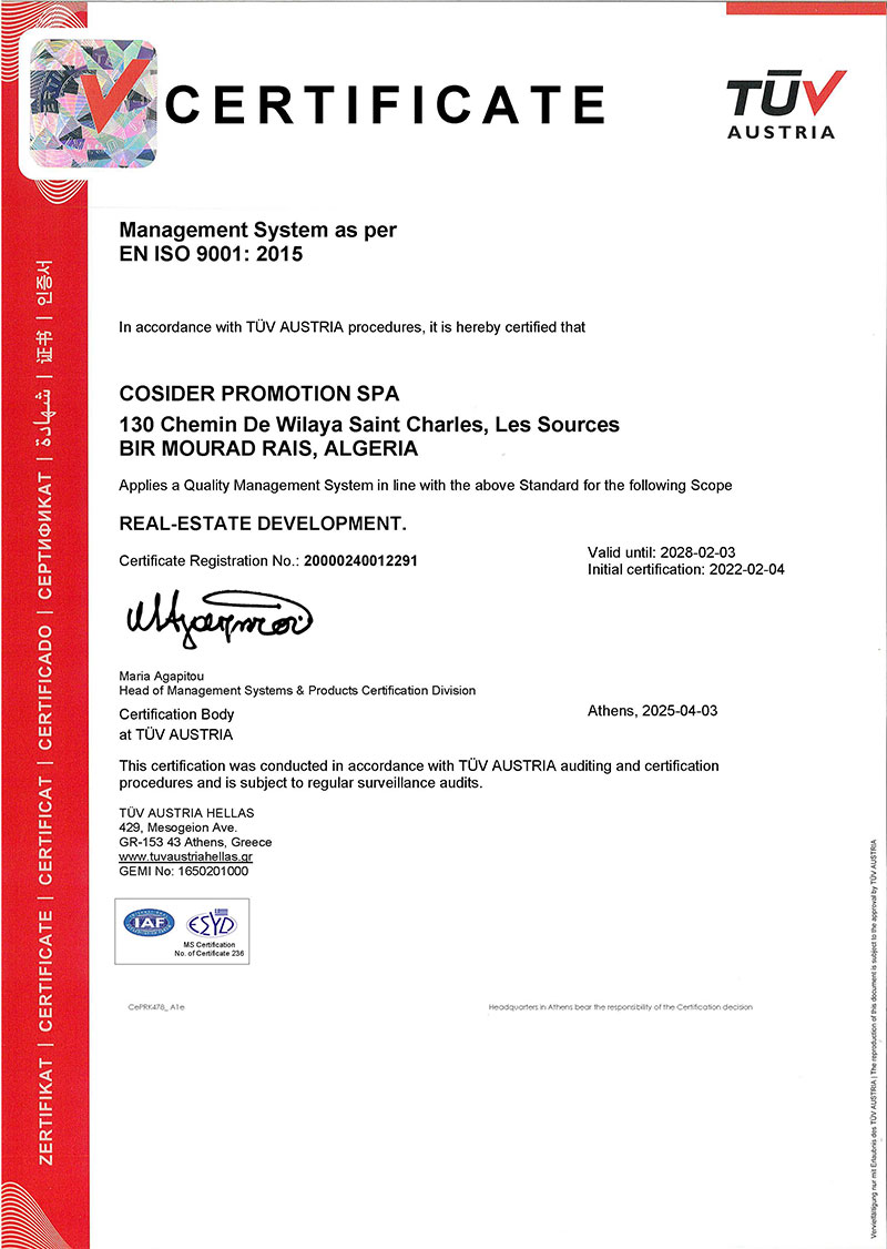 Dans le cadre de la mise à niveau de sa certification, COSIDER Promotion a entrepris en décembre 2021 une opération d’évaluation de son fonctionnement avec le bureau TÜV Rheinland Algeria.